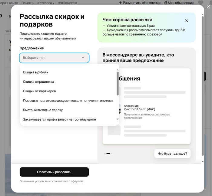 Что касается отображения объявлений в подборках и рекомендациях, маловероятно, что пользователь, зашедший на сайт для покупки, например, стола, случайно увидит ваше предложение в подборке и вдруг решит приобрести участок вместо мебели. Аналогичная ситуация возникает, если пользователь долго ищет участок в конкретной области, а Авито начинает показывать ему ваш участок из района, который его совершенно не интересует. Он может даже добавить его в избранное, но практическая ценность такого добавления будет крайне низкой. А потом вы еще потратите на него 30р на рассылку