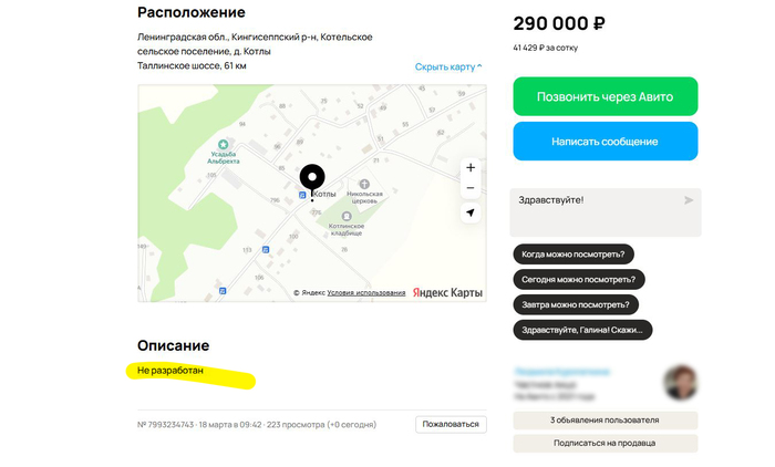 Изучите рыночные цены в вашем районе/регионе и ставьте адекватную цену, если хотите продать быстрее. Не жадничайте! Красивое, но чрезмерно дорогое объявление, которое висит без результата годами, вряд ли принесёт вам удовольствие.