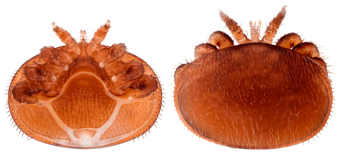 Давайте посмотрим на нашего героя поближе. Varroa destructor - это клещ размером примерно 0.8-1.8 мм в длину и 1.5-2 мм в ширину. Он имеет овальное, уплощенное тело, покрытое хитиновым щитком. Цвет у него обычно красновато-коричневый, что помогает ему сливаться с телом пчелы.
