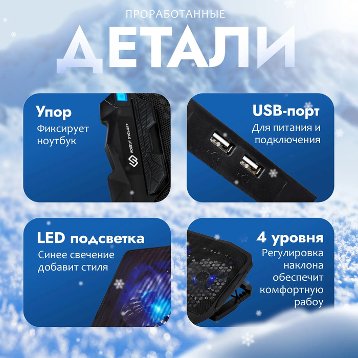 Эта охлаждающая подставка — идеальное решение для тех, кто ценит производительность, удобство и современный дизайн. Она создана специально для ноутбуков с диагональю экрана до 17 дюймов и обеспечивает надёжную фиксацию устройства благодаря противоскользящей опоре на лицевой панели. Одно из самых выгодных предложений на ОЗОН + быстрая доставка до ПВЗ.