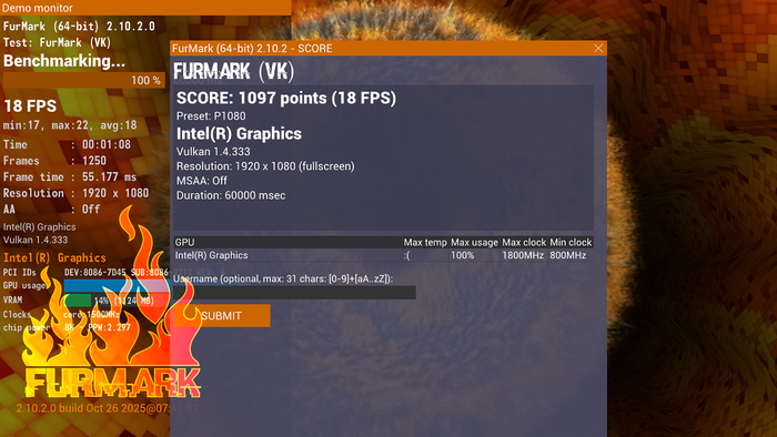 В "волосатом бублике", S13 набирает скромные 1097 попугаев в разрешении 1080P. По уровню, это примерно как GTX750, причём не Ti. Для iGPU это неплохой результат в синтетике, но как он проявит себя в играх - узнаем чуточку позже.