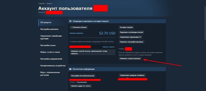 Определите страну магазина в Account details — Store & Purchase History.