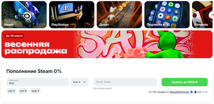 Где можно пополнить Steam на 10 рублей?