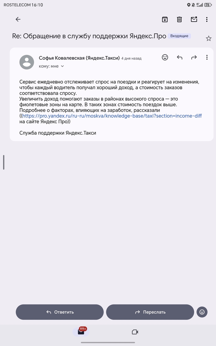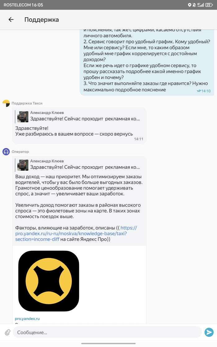 Во-первых, с меня начали просить какие-то внутренние номера из Яндекс.Про, чтобы разобраться в чём дело. Но вопросы у меня общие. Их может задать абсолютно каждый человек. Информация о достойном доходе напрямую касается рабочего процесса и заработка. Такая информация должна быть предоставлена по запросу — либо вообще быть в открытом доступе.