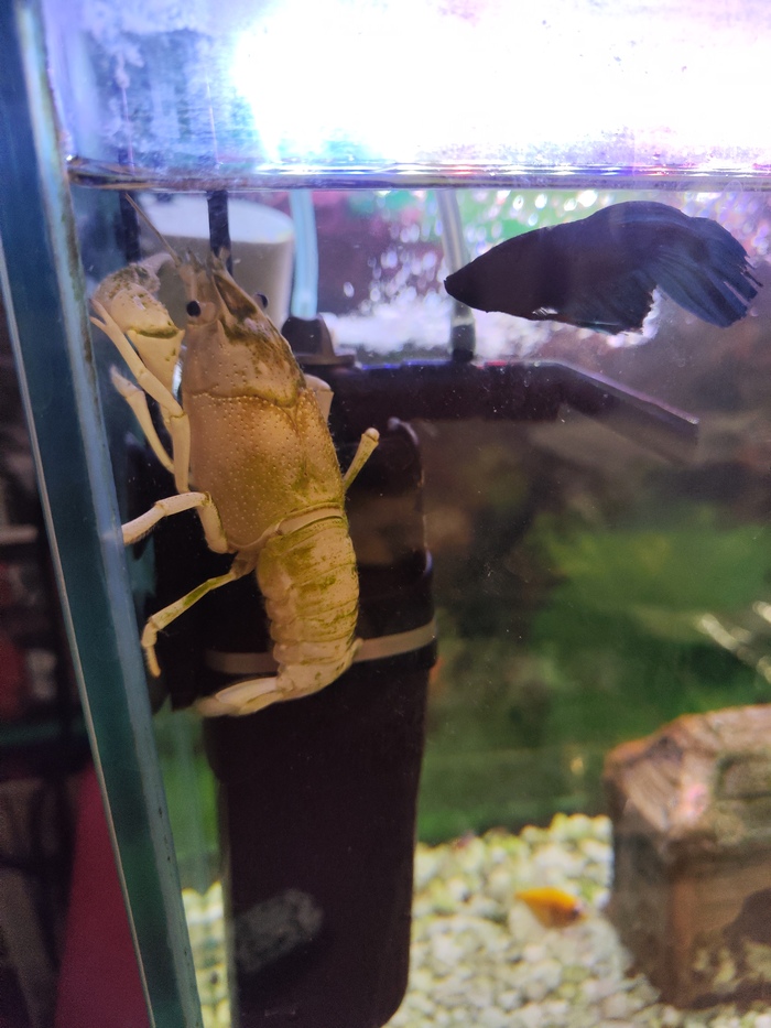 Вот фото однорукого, но очень обаятельного рака Гоши, который все никак не уйдет в линьку. И кунг-фу лягуха.