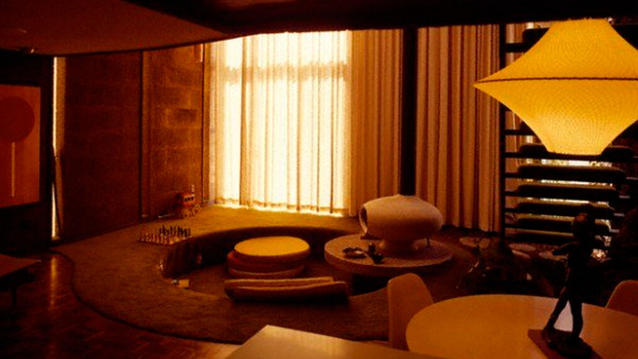 2) Есть предположение, что девушкой в песне была актриса Натали Вуд или любая другая "звездочка" из богемной тусовки, с которыми Джон часто встречался в то время. Тогда вполне невозможно, что отсутствие мебели - это не признак бедности, а дань моде, а интерьер был просто ультра-современным и выглядел как-то так: