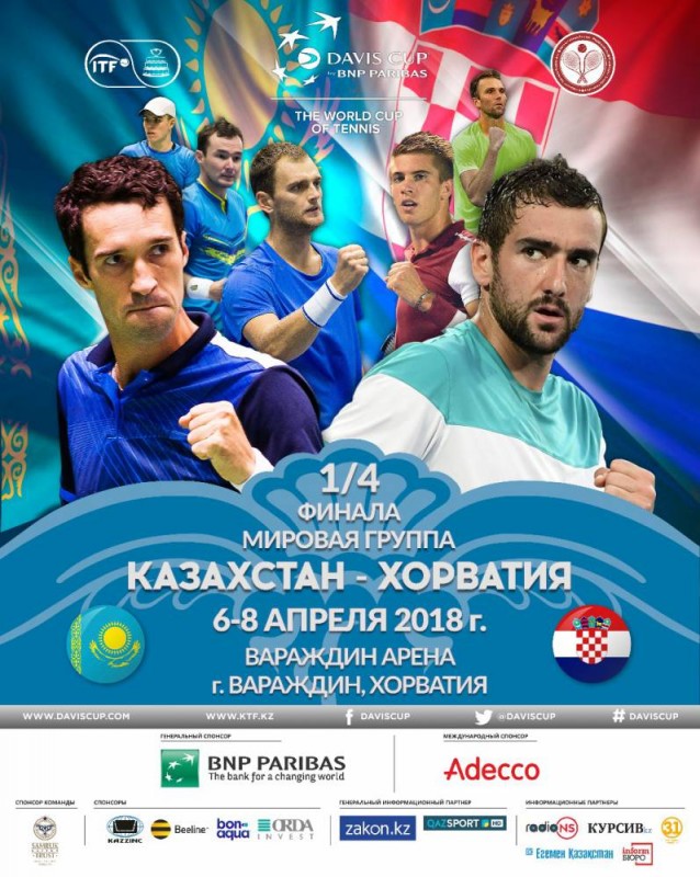 Матчи Хорватия-Казахстан пройдут с 6 по 8 апреля в хорватском Вараждине. Казахстанская команда семь раз участвовала в Мировой группе Кубка Дэвиса и пять раз играла в четвертьфинале.