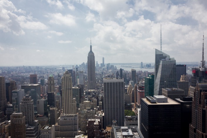 Итак, заходим в холл Центра. Взгляд сразу останавливается на потолке, расписанном картинами. Они нарисованы так, что, если ты смотришь вверх и передвигаешься, картины вслед за твоим взглядом и движением тоже меняют свое положение. Я всегда с настороженностью относилась к высоте, но невозможно обойти вниманием небоскребы – один из символов Нью-Йорка. Передо мной не стоял выбор, на какой из самых знаменитых мне взобраться. Я выбрала смотровую площадку Top of the Rock Рокфеллеровского центра. Здесь, когда поднимаешься наверх, твоему обзору ничего не мешает – ни сетка, ни стекло. А это, если вы хотите сделать хорошие фотографии, очень важно. Ну и, конечно, отсюда видно здание легендарного Эмпайр-стейт-билдинг. В общем, я поднималась в предвкушении новых ярких эмоций. И я их получила! Вид на город – просто потрясающий. Весь Нью-Йорк – словно на ладони. Именно в этот момент меня охватило ощущение, что я становлюсь частью этого города. Интересно, что снимки, сделанные даже на профессиональной аппаратуре, не передают личного ощущения от этого нереального зрелища.