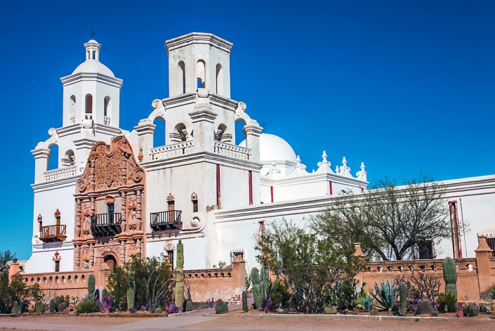 А первой вылазкой в город стало посещение собора Миссии Сан-Хавьер дель Бак. Сейчас это национальный памятник. Католическая миссия была основана в 1692 году, строительство же современной церкви началось в 1783 году и продолжалось до 1797 года. Это самая старая европейская архитектура в Аризоне, оставшаяся практически нетронутой. Интерьер церкви наполнен изумительными росписями и статуями. Ежегодно сюда приезжают около 200 тысяч посетителей. Но собор действующий, и, в отличие от других испанских миссий в Аризоне, Сан-Хавьером по-прежнему управляют францисканцы.