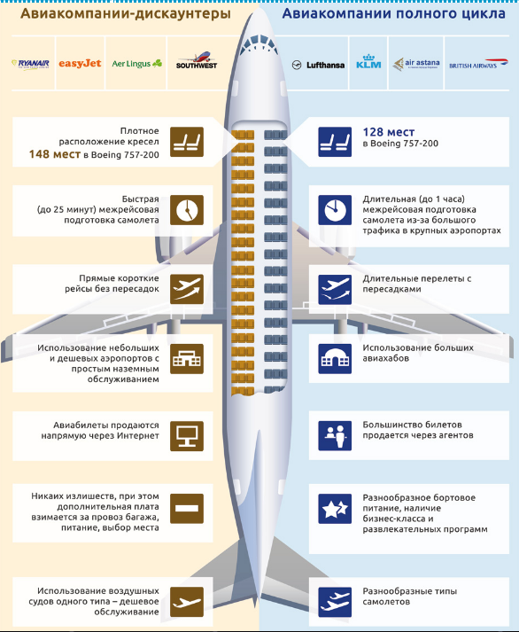 Данная картинка наглядно демонстрирует, на чем экономят лоукостеры.
