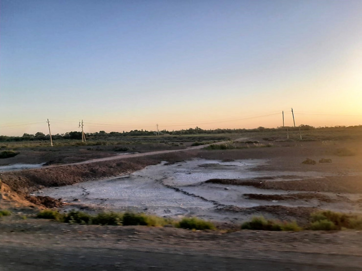 Дорога уводит в сторону Сексеула и еще дальше - в поселок Акеспе. На карте видно, что ранее этот поселок располагался непосредственно у побережья залива Бутакова. Сегодня вода отошла. Земля местами соленая, а местами - пустынная… Сам же поселок за считанные годы буквально занесло песками …