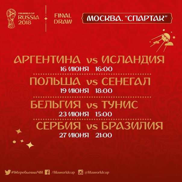 Расписание матчей чемпионата мира - 2018 на стадионе "Лужники":