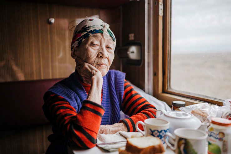 Облегчение - потому что я наконец была дома, а печаль - потому что мне пришлось оставить всех своих друзей и соседей. Но, в конце концов, это было правильное решение. Здесь, в Казахстане, тишина и покой - единственное, что мне нужно в этом возрасте. Путешествовать в поезде для меня - самое захватывающее приключение. Можно пить чай весь день, знакомиться с новыми людьми и наблюдать за степью из окна. Это отражает мое внутреннее состояние".