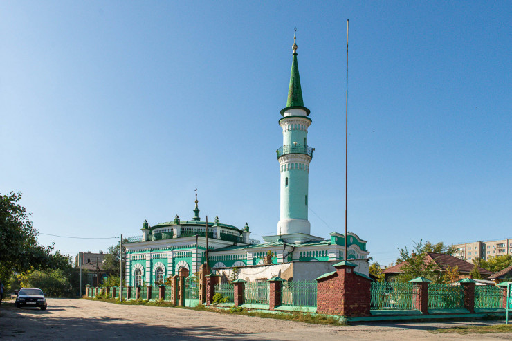 Двухминаретная мечеть построена на средства татарских купцов по турецкому проекту архитекторами Болботовым и Манашевым. Это образец культовой мусульманской архитектуры XIX века. В городской среде распространена довольно типичная для всех таких строений легенда о том, что некогда мечеть соединялась с домом муллы подземным ходом.