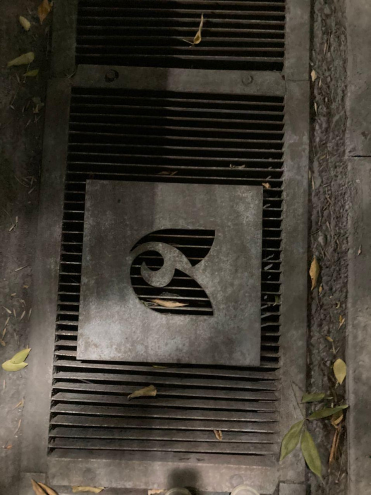 А вот так здесь прокладывают тротуарную плитку, защищая деревья металлическим ограждением.