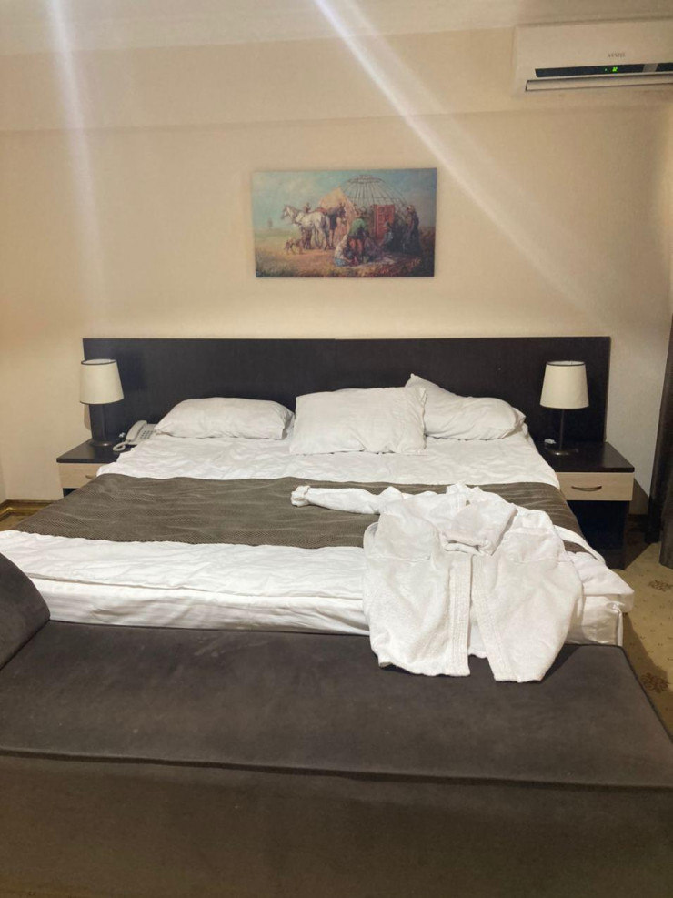 На второй день мы перебрались в гостиницу через дорогу - "Сити отель". 10 тысяч тенге за одного, 12 - за двоих. Это в экономклассе. Самый дорогой люкс - 24 тысячи тенге за двоих. Здесь же находится и хостел, там условия проще, соответственно, и цены ниже.