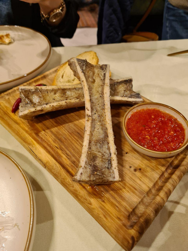 А нам удалось попасть в ресторан национальной кухни "Сандык", где нам провели мастер-класс по приготовлению некоторых экзотических блюд. Например, это, называется борша ет - маринованные говяжьи слайсы под соусом чили.