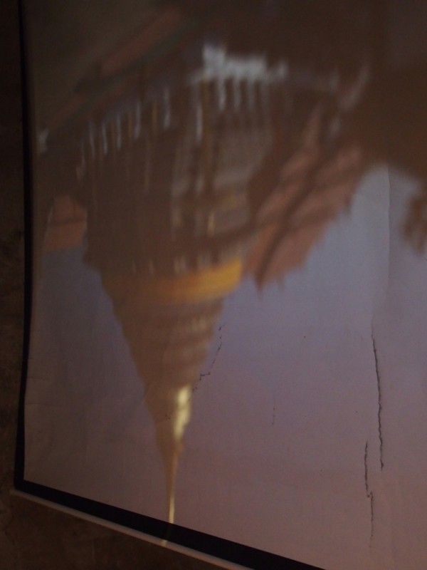Вместе с гидом и минчанином Сергеем мы поднялись по ступенькам и втиснулись через низенькую дверь в крохотное пространство вихана. Внутри ничего не было, кроме белого экрана. Когда дверь закрыли, то через отверстие, расположенное выше, лучи света стали падать на экран, формируя перевернутое изображение золотой ступы. Было даже видно, как проходят люди – мы оказались в древнем кинотеатре. Точнее, это была классическая камера-обскура, первые упоминания о которых появились еще в V-IV веках до нашей эры. Раньше, когда экрана не было, картинки появлялись на белой стене. Когда-то их увидел и первый зритель. Это был, наверное, обычный монах, пришедший помедитировать в укромное место. Закрыв за собой дверь, к тому времени уже ветхую, он заметил, что в верхней ее части образовалась большая трещина, которой раньше не было. А обернувшись, вдруг обнаружил то, от чего душа его похолодела…