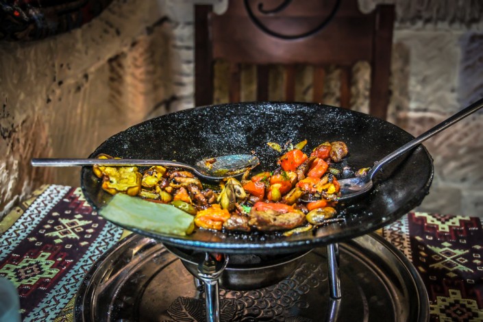 Грузинская еда - это то, что заставит полюбить эту страну навсегда! Не секрет, что кухня - это гордость Грузии, и многие вновь и вновь сюда едут только ради хинкали или настоящих хачапури. Сочетание пряных трав и острых специй, овощей и фруктов, сыров и мяса в любых вариациях, делают кухню Грузии неповторимой. Самый популярный грузинский обед подается по формуле "хачапури плюс хинкали".  Грузинскую выпечку предлагают в сети нац-поп-ресторанов "Мачахела" - всего 10 точек в Тбилиси. "Хинкалис Сахли" на улице Руставели специализируется на всевозможных хинкали.