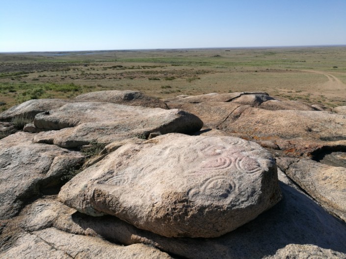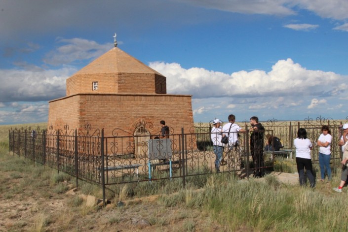 По пути к мавзолею Бегим-Ана участники экспедиции посетили историко-археологический комплекс "Теректы". Там участники познакомились с неолитическими стоянками, наскальными изображениями эпохи бронзы, курганами и мазарами XVIII-XIX веков.