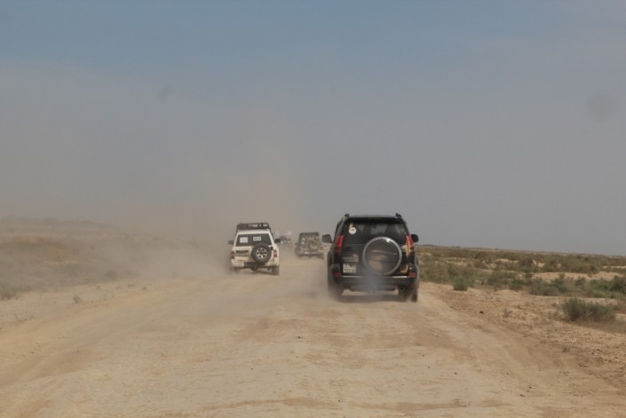 Дорога, представлявшая собой полное бездорожье, пролегала через пыльную степь и безводную пустыню с 40 градусами жары за бортом. В таком режиме ко второй половине дня участники экспедиции сошлись во мнении, что, наверное, путь к священным местам по определению должен быть с преградами и сложностями, дабы "очистить" путников.