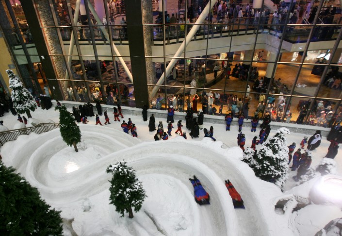 Самый неожиданный участник нашего топа - закрытый горнолыжный комплекс в Дубае - Ski Dubai. Когда вся пустыня Эмиратов пылает 50-градусной жарой, внутри поддерживается стабильная минусовая температура. Ангар, примыкающий к торговому центру Mall of Emirates, занимает площадь в 22,5 тысячи квадратных метров. Хотя максимальная высота склона составляет всего лишь 65 метров, а самая длинная трасса не больше 400 метров, не стоит вычеркивать его из dream-листов. Это больше достопримечательность, нежели настоящий спортивный объект. Это все равно что покататься на коньках по замерзшим каналам Амстердама или в Центральном парке в Нью-Йорке.