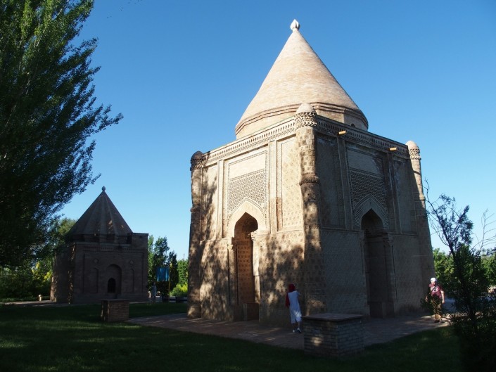Раньше, когда в Таразе не было высотных зданий, последний луч заходящего солнца одновременно касался двух мавзолеев. Так было задумано.