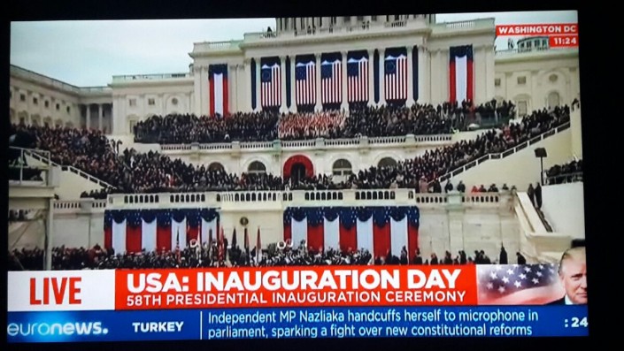 20.52. В Вашингтоне 9.52 утра. Все готово к началу официальной церемонии инаугурации. Мы начинаем трансляцию.