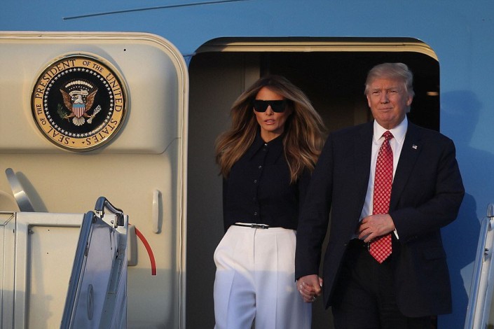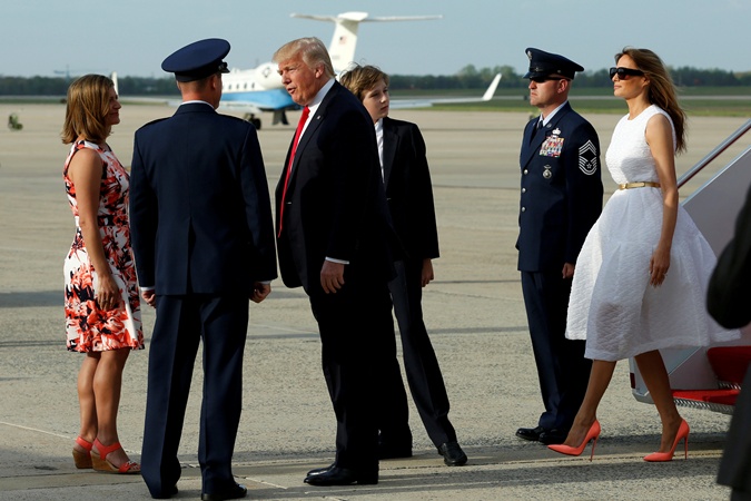 Фотография показала, чем Трамп отличается от пяти своих предшественников Дональд Трамп со своим сыном Барроном и женой Меланией прибывают в штат Мэриленд. © Reuters