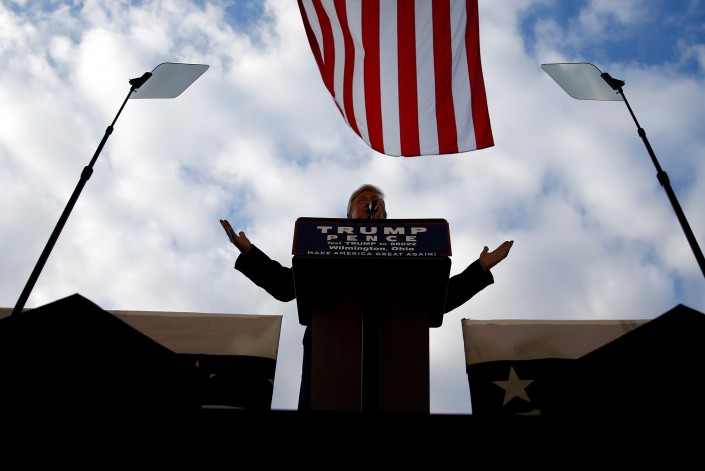 Свою предвыборную кампанию Дональд Трамп начал с обещания возвести стену на границе с Мексикой и надеется заставить ее саму платить за этот проект, говорил он также и об опасности мигрантов-мусульман и утверждал, что рабочие места, в первую очередь, должны доставаться американцам, а не приезжим. Миллиардер обещал максимально ужесточить пограничный контроль, лишить мигрантов доступа к социальному обеспечению и отменить все законы Барака Обамы, ослабевающие ответственность для нелегальных мигрантов. Помимо этого, он обязался увеличить продолжительность декрета для матерей, создать 25 миллионов рабочих мест, защитить право на владение оружием.