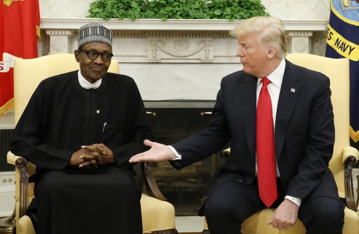 Дональд Трамп и президент Нигерии Мохаммаду Бухари. © Reuters