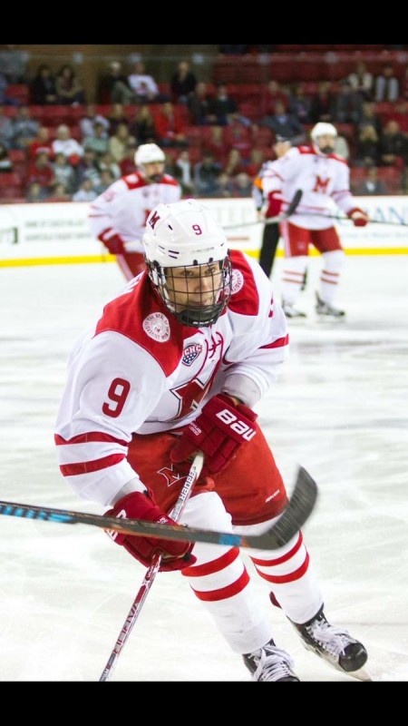 20-летний хоккеист задрафтован "Коламбус Блю Джекетс", выступающим в Национальной хоккейной лиге (НХЛ). Мейер. Играющий на позиции правого форварда, он набрал 26 очков в дебютном сезоне Национальной ассоциации студенческого спорта.