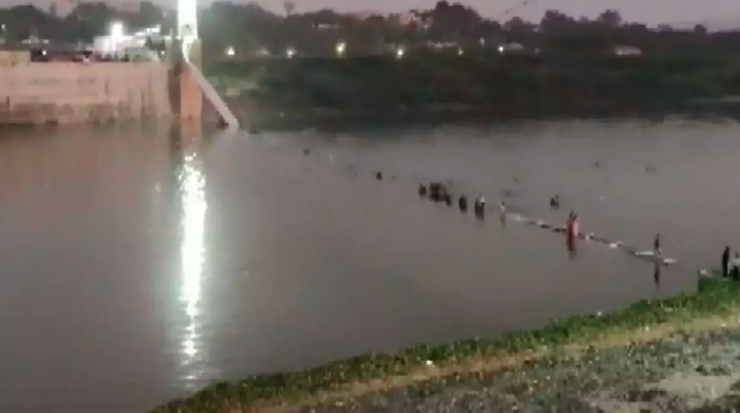 Более 90 человек погибли при обрушении моста с людьми в реку в Индии ©Twitter/HasanSafin