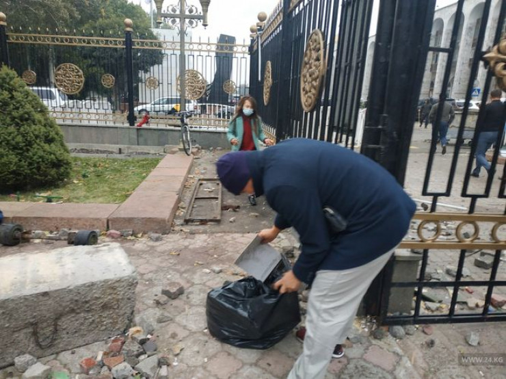 Белсенді адамдар тобы Ақ үйді күзетіп, айналаны жинастыра бастаған.