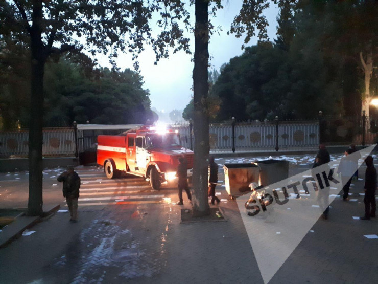Территорияда Мемлекеттік күзет қызметінің мамандары жоқ. Ресми расталмаған ақпаратқа сүйенсек, ел президенті Сооронбай Жээнбеков оңтүстікке ұшып кеткен. Артынша президенттің баспасөз хатшысы Толгонай Стамалиева Сооронбай Жээнбеков Бішкекте екенін хабарлады.