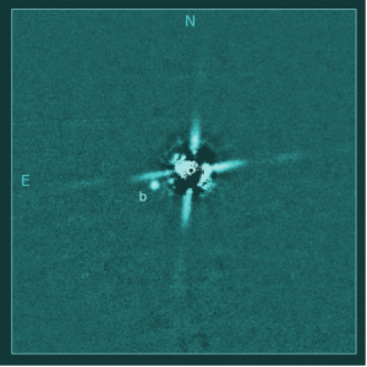 Астрономы Гавайского университета получили снимок экзопланеты 2M0437, которая расположилась на расстоянии в 417 световых лет от Земли. Это одна из самых молодых планет вне Солнечной системы среди всех известных ученым.