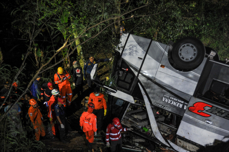 Сообщается, что трагедия произошла на острове Ява в ночь на 11 марта. Автобус вез школьников и их родителей с экскурсии, всего в салоне было 66 человек. Внезапно водитель потерял управление. Более 27 человек погибли.