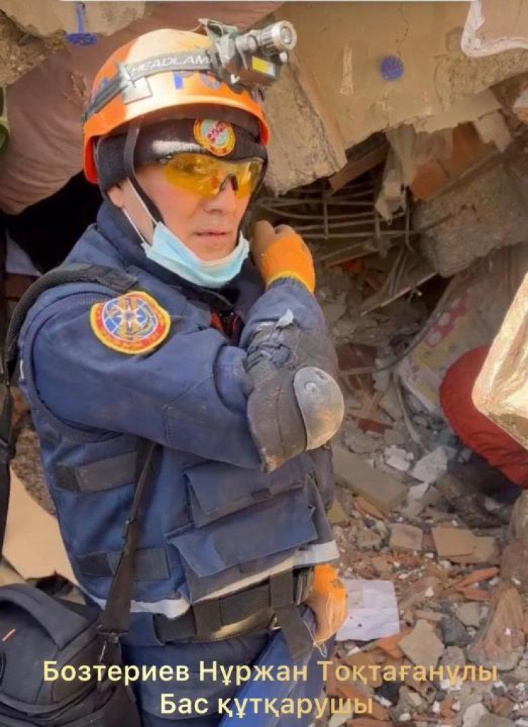 Руководитель спасательного подразделения республиканского оперативно-спасательного отряда МЧС - Арыстанбаев Бауыржан Бахытович. Сейчас он проводит поисково-спасательные работы после разрушительного землетрясения в Газиантепе.