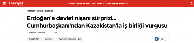 В издании Hürriyet подчеркнули, что перед пресс-конференцией Токаев вручил лидеру Турции государственный орден "Достық" І степени. Авторы статьи подчеркнули, что это был особенный сюрприз для турецкого лидера.