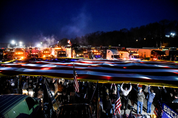 Сотни водителей грузовиков и других автомобилистов провели акции протеста на автомагистралях вокруг Вашингтона, округ Колумбия, пытаясь войти в город. Полиция заблокировала многочисленные мосты, съезды с шоссе и городские улицы, не позволив колонне грузовиков въехать в столицу США.