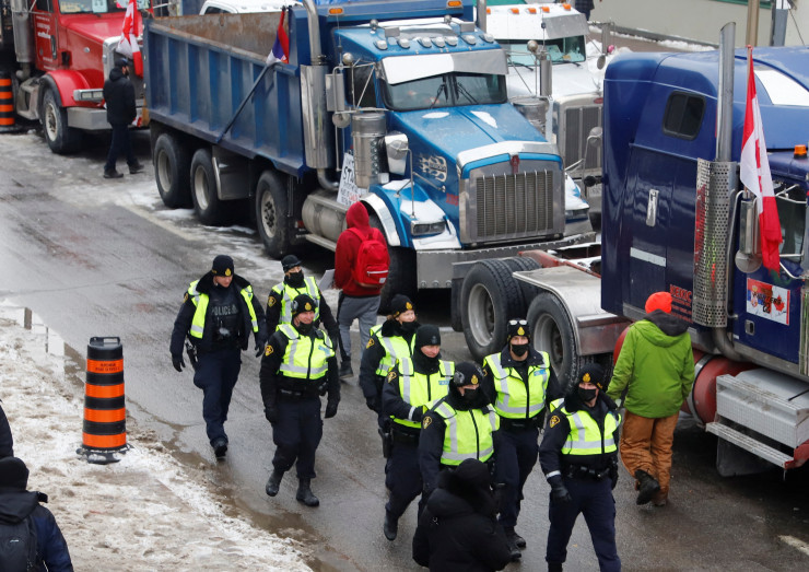В связи с протестами в столице Канады было возбуждено почти 80 уголовных расследований. Среди тысяч демонстрантов было произведено около двух десятков арестов. Инциденты, расследуемые полицией, включают предполагаемые преступления на почве ненависти и порчу имущества. Заместитель начальника полиции Стив Белл также сообщил, что полиция обнаружила около 100 грузовиков с детьми в них и связалась с Обществом помощи детям по поводу шума, дыма и гигиены.