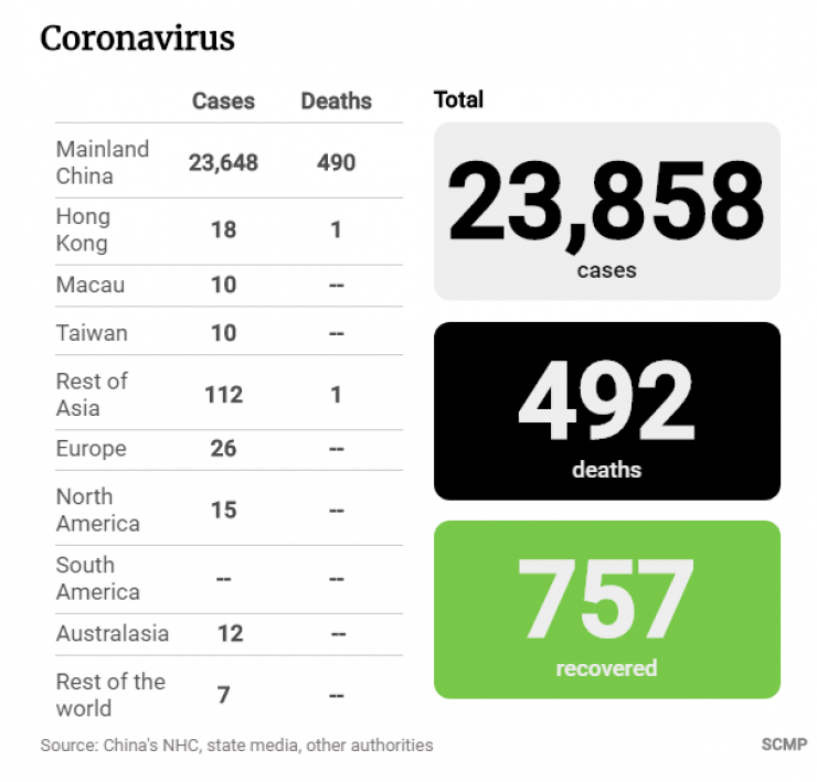 По состоянию на утро среды, 5 февраля, общее количество скончавшихся от нового типа коронавируса составило 492 человека, число заразившихся - 24 324 человека.  Еще 892 пациента выписаны из больниц. Об этом сообщает газета South China Morning Post со ссылкой на государственный комитет по вопросам здравоохранения Китая.