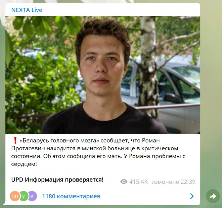 Көп ұзамай мемлекеттік БАҚ-тар тергеу изоляторында отырған Романның суретін жариялай бастады. NEXTA LIVE суретке қарап, "Романды ұрған болуы мүмкін" деп топшылаған.