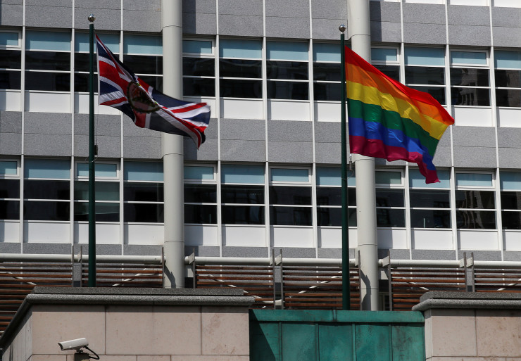 "Таким образом мы хотим выразить солидарность с представителями ЛГБТ-сообщества в России и во всем мире. Никто из них не требует для себя особых привилегий, а лишь достойного и уважительного отношения к себе и тех же прав, которые имеют остальные люди", - прокомментировали появление радужного флага британские дипломаты.