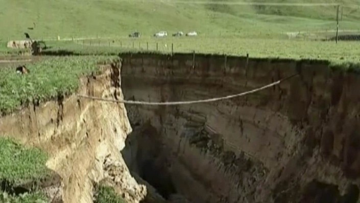 Провал, получивший название "Томо", обнаружил местный фермер Колин Тремейн после продолжительных ливней. Его происхождение остается загадкой - одни видят причину в проливных дождях, другие считают, что во всем виновато землетрясение, которое произошло неподалеку.
