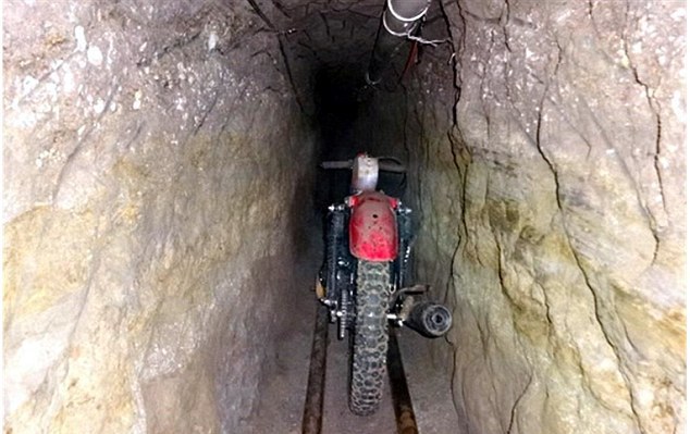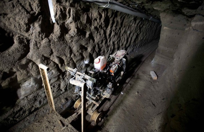 Мотоцикл на рельсах в узком туннеле, через который был совершен побег. © Grupo Reforma