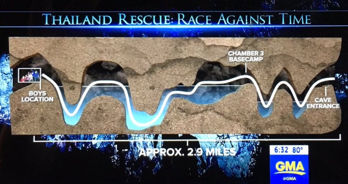 Детей выводили в легководолазном снаряжении, и около одного километра из пяти, отделявших их от выхода из пещеры, они проплыли под водой в сопровождении опытных дайверов.