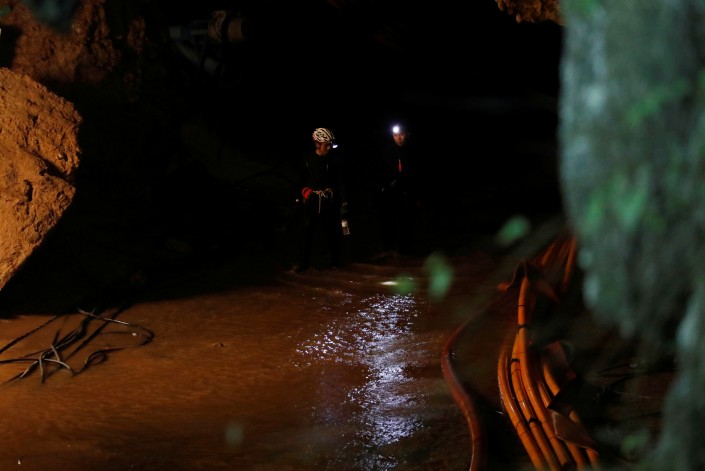 После несчастного случая спасатели отказались от плана вплавь вызволить детей из пещеры.