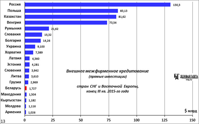 Кроме того, сообщается, что у Казахстана - самая маленькая доля государственного долга в валовом внешнем долге - 7,2 процента. При этом у государства самая большая доля внешней задолженности по межфирменному кредитованию (прямому инвестированию) в валовом внешнем долге - 52,6 процента. "Это связано с огромным объемом межфирменного кредитования - прямых инвестиций, в первую очередь, в разработку нефтегазовых месторождений в этой стране, в том числе от крупнейших мировых компаний", - пишут авторы статьи. Внешнее межфирменное кредитование (прямые инвестиции) в Казахстан на третий квартал 2015 года составило 81,62 миллиарда долларов, что ставит страну на третье место после России и Польши.