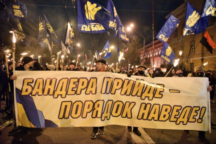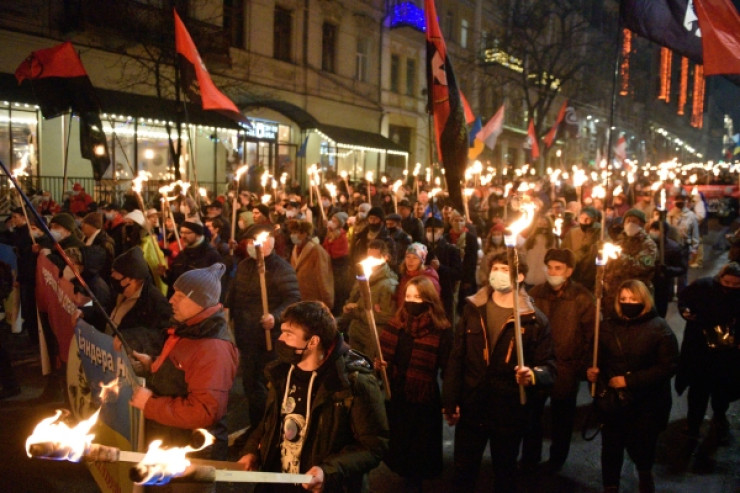 В пятницу, 1 января, в Украине националисты отметили 112-летие лидера ОУН Степана Бандеры, устроив факельные шествия в Киеве и других крупных украинских городах, сообщает Tengrinews.kz со ссылкой на портал strana.ua.